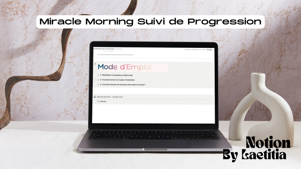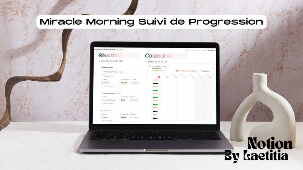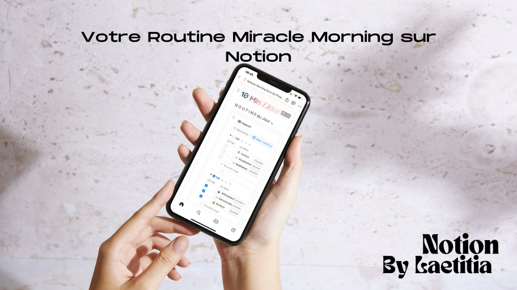Vous rêvez de commencer vos journées avec plus de clarté, d’énergie et de motivation? Découvrez mon template Notion « Miracle Morning » conçu pour vous aider à adopter et suivre la méthode Morning Miracle au quotidien. Vous y trouverez :